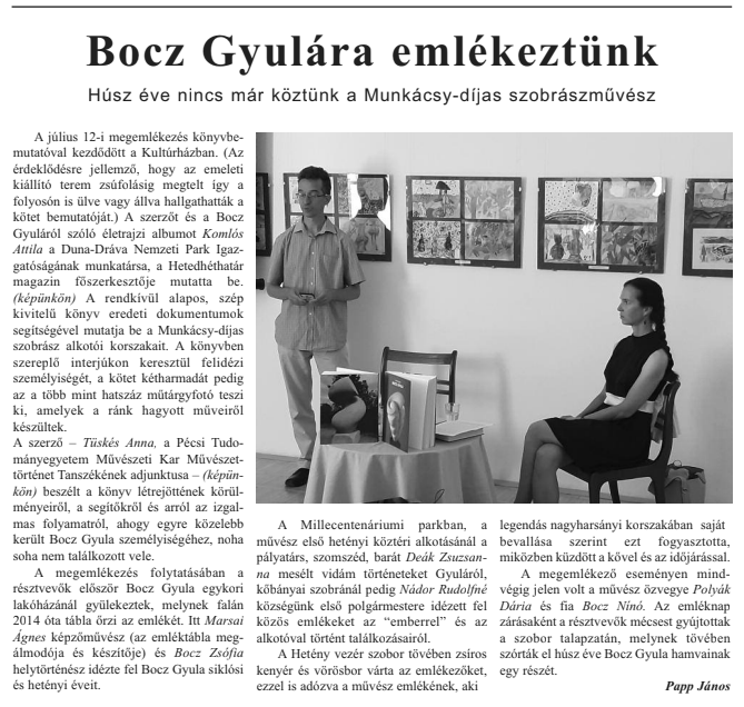 Papp János: Bocz Gyulára emlékeztünk Húsz éve nincs már köztünk a Munkácsy-díjas szobrászművész Zengő 2023-10 | 7. oldal
