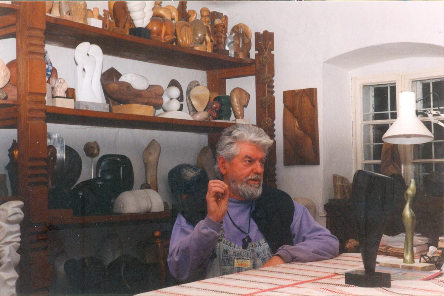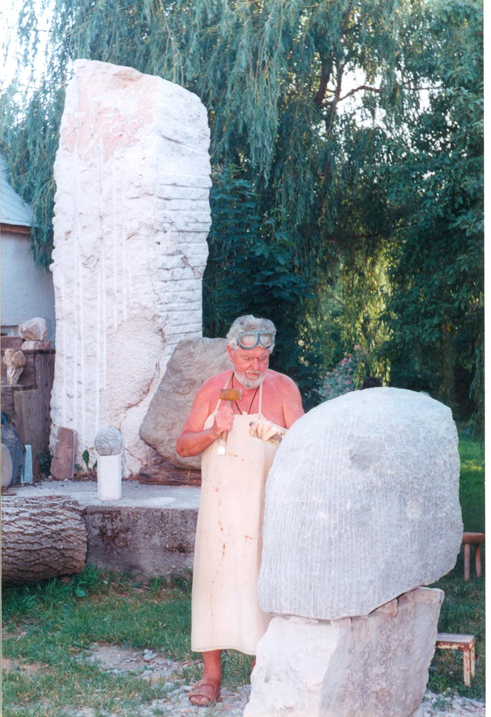 In 1982, he settled down and in his grandparents’ house in Hosszúhetény, a place which filled him creative energy. From the 1990s onwards, he received major commissions and was significantly supported by the mayor of Hosszúhetény, who commissioned him to create the World War Memorial (1990) in the cemetery, the Plastic 2 (1996) in the main square, and the Hetény Chief (2001) at the beginning of the road to Szentlászló, in the yard of a small abandoned quarry.