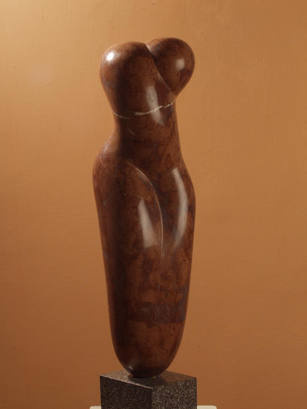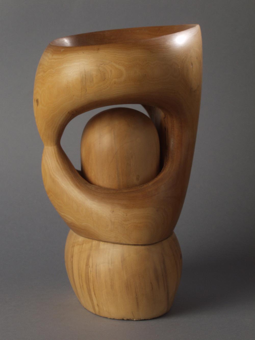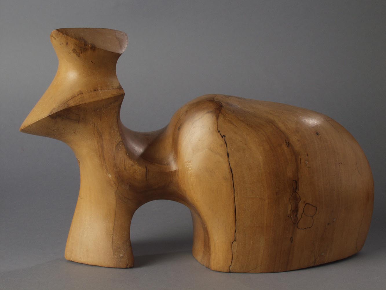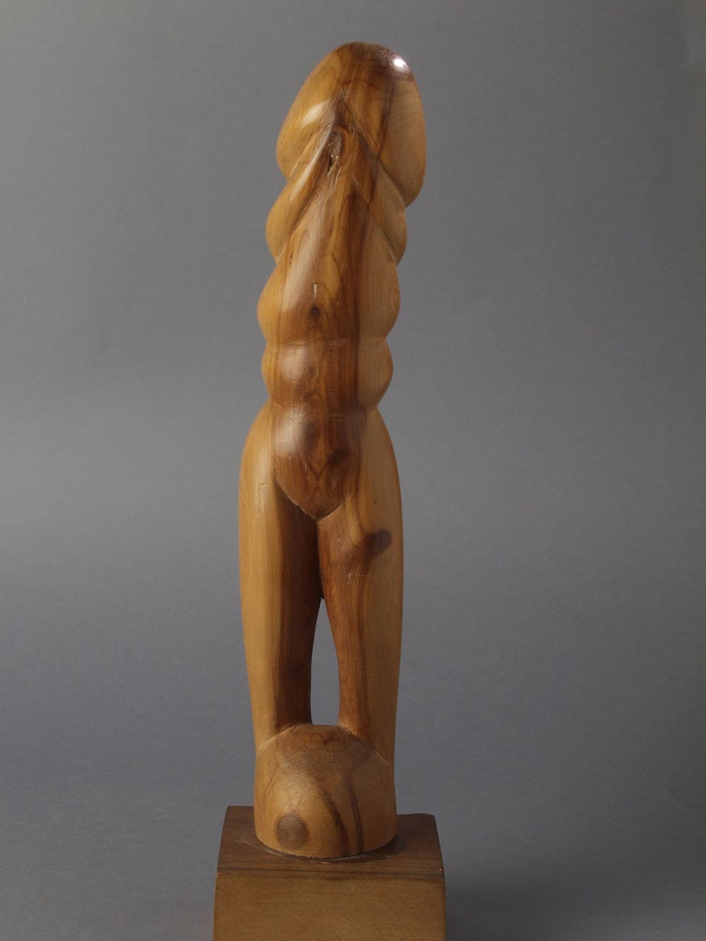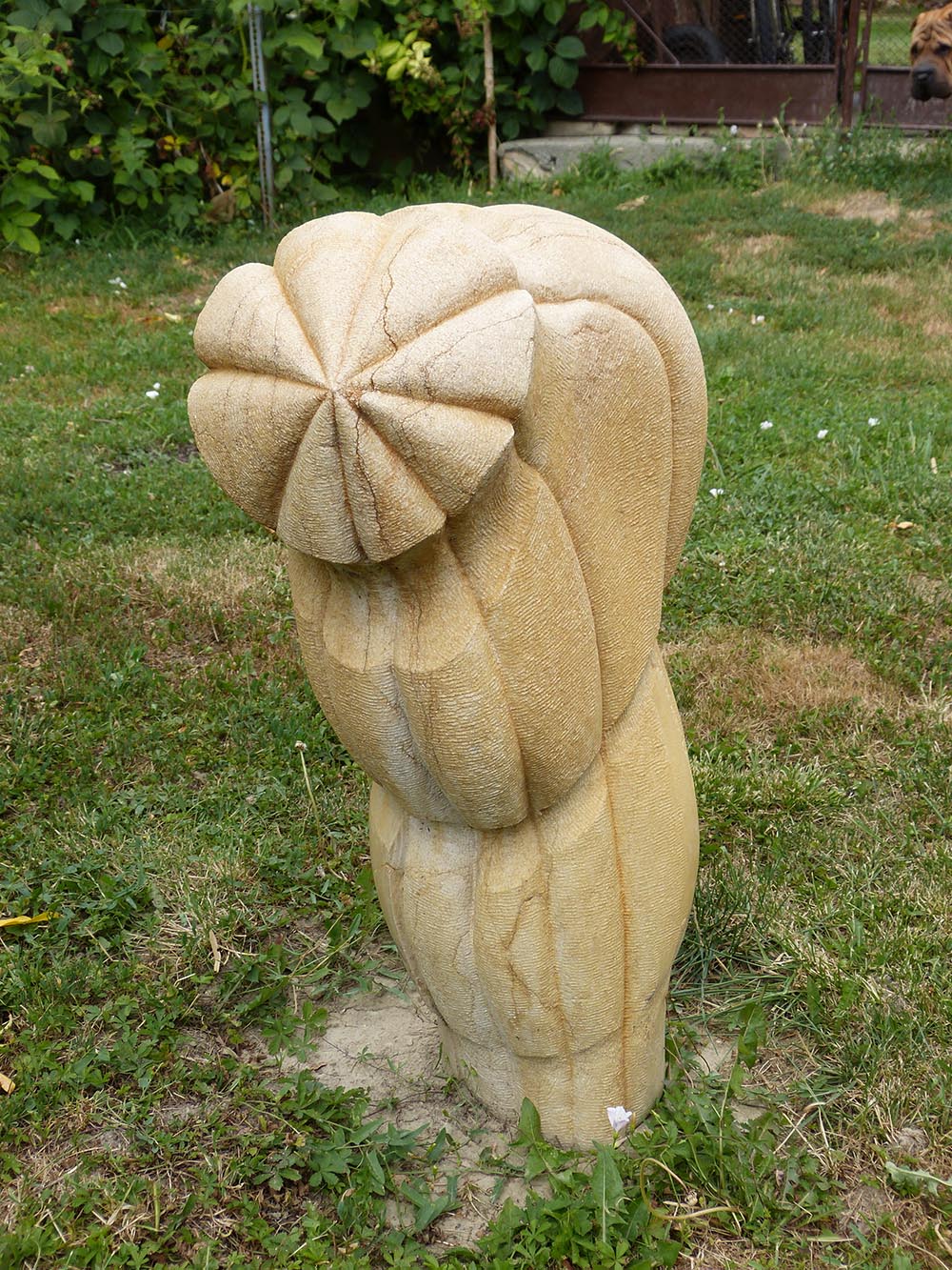 The spirit of land art is present throughout his work. For his outdoor works he always selected materials and worked them to fit in with their surroundings. His smaller sculptures were created with the hope of a large-scale realisation. A good example of this is the kneeling female figure, the 33 cm high Praying Woman carved in 1965 from cherry wood. He also sculpted this same figure almost twenty years later from Carrara marble for a 172 cm high tomb, which is located today in the public cemetery in Mohács (János and Jánosné Czita, parcel 8).