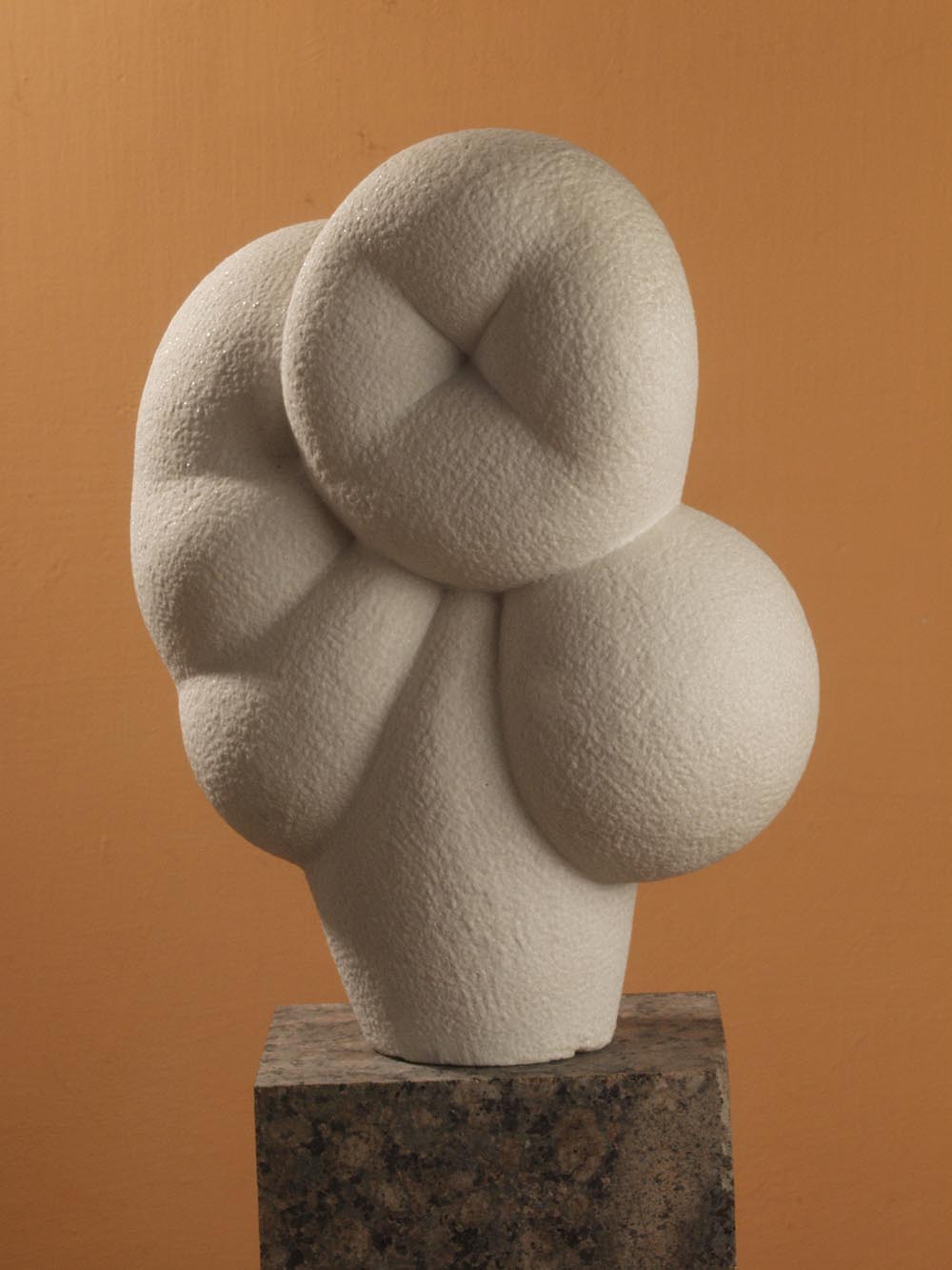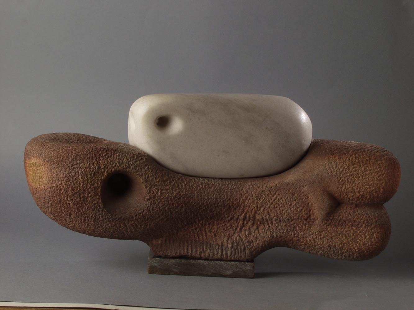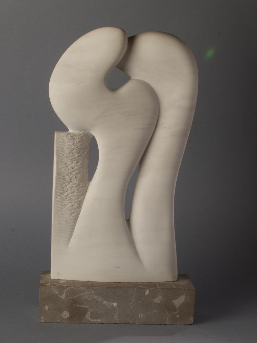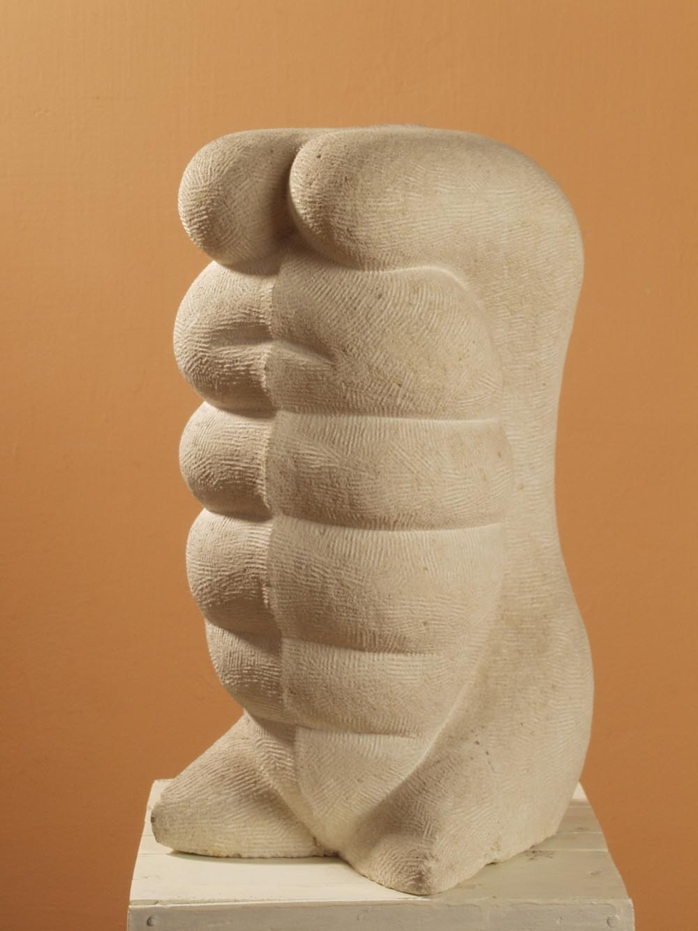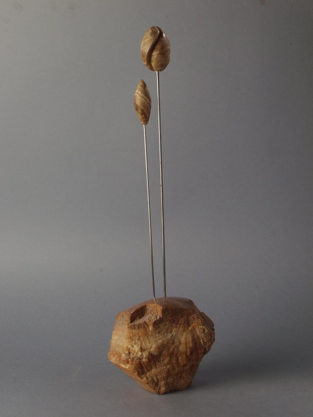 The spirit of land art is present throughout his work. For his outdoor works he always selected materials and worked them to fit in with their surroundings. His smaller sculptures were created with the hope of a large-scale realisation. A good example of this is the kneeling female figure, the 33 cm high Praying Woman carved in 1965 from cherry wood. He also sculpted this same figure almost twenty years later from Carrara marble for a 172 cm high tomb, which is located today in the public cemetery in Mohács (János and Jánosné Czita, parcel 8).
