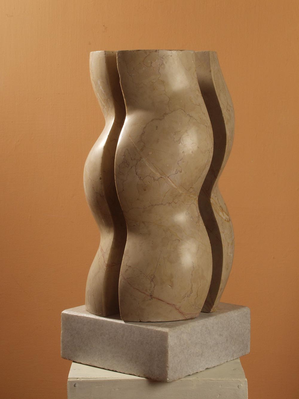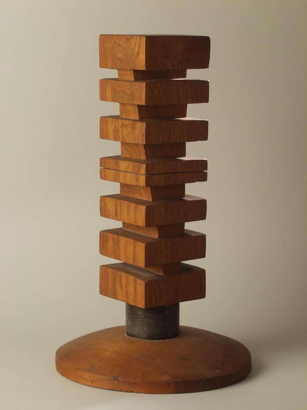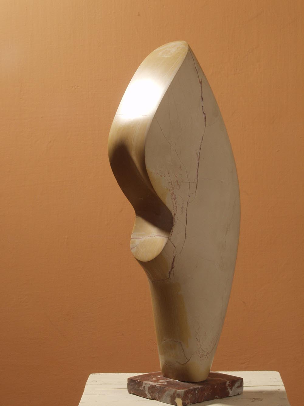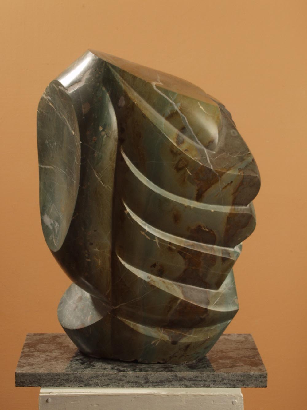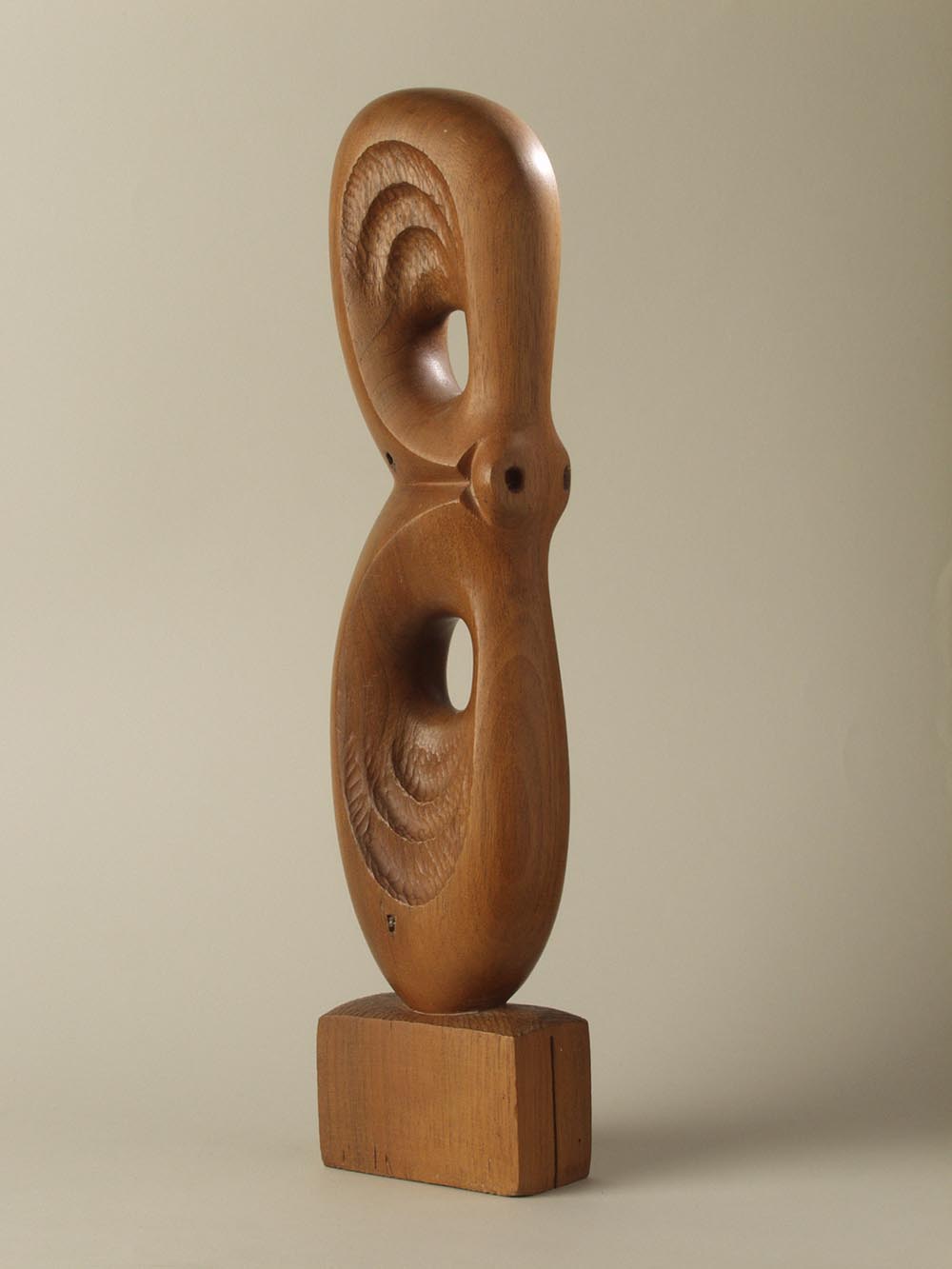 The spirit of land art is present throughout his work. For his outdoor works he always selected materials and worked them to fit in with their surroundings. His smaller sculptures were created with the hope of a large-scale realisation. A good example of this is the kneeling female figure, the 33 cm high Praying Woman carved in 1965 from cherry wood. He also sculpted this same figure almost twenty years later from Carrara marble for a 172 cm high tomb, which is located today in the public cemetery in Mohács (János and Jánosné Czita, parcel 8).