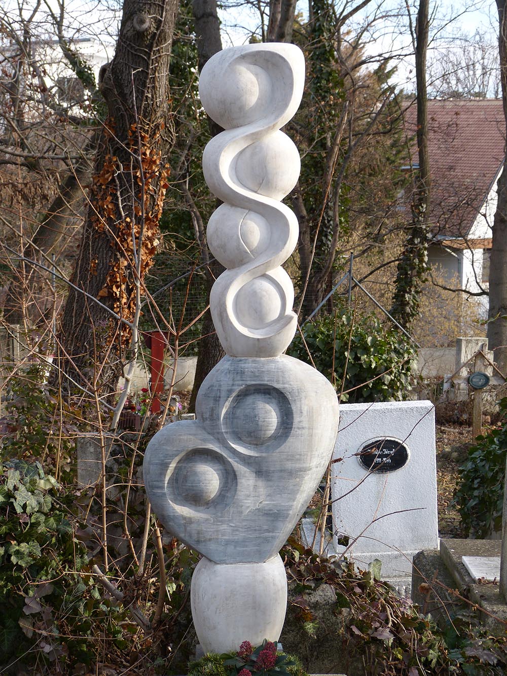 Köztéri műveihez mindig olyan anyagokat választott és azokat úgy munkálta meg, hogy illeszkedjenek a környezetükbe. Kisléptékű szobrait is nagyméretű megvalósítás reményében készítette. Ennek jó példája az 1965-ben cseresznyefából faragott, térdelő nőalak, a 33 cm magas Fohászkodó, amit majd húsz évvel később megformált carrarai márványból egy 172 cm magas síremléknek, s ma a mohácsi köztemetőben áll. Több mint négy évtizedes munkássága során mintegy harminc köztéri szobrot és domborművet alkotott, melyek legnagyobb része Baranya megyében áll, ezek megtalálhatók a www.kozterkep.hu online adatbázisban. Budapesten négy, Debrecenben, Komlón és Mohácson egy-egy köztéri műve található.